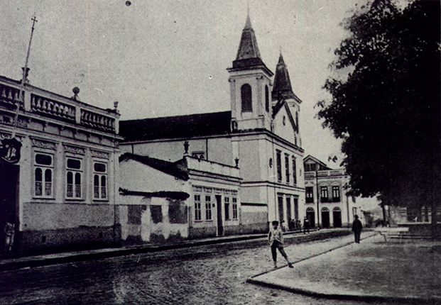 (Na imagem, postal do Palácio Episcopal e Igreja do Rosário. Em primeiro plano, a atual Praça Barão do Rio Branco - Acervo AMPAH)